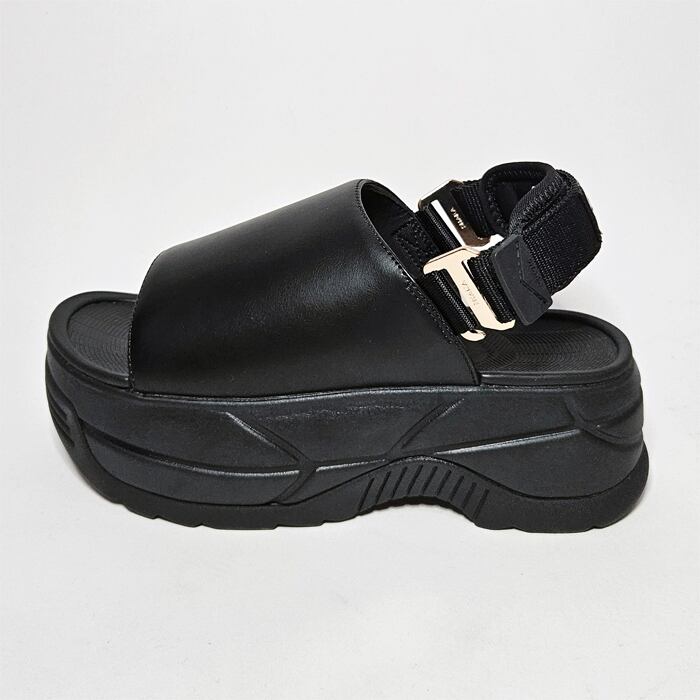 甲を覆うPUレザーとゴールドカラーのパーツ使いが高見え◎な2WAY仕様のボリューミーなレディース厚底サンダル『VACAY CHUNKY(バケイチャンキー)』