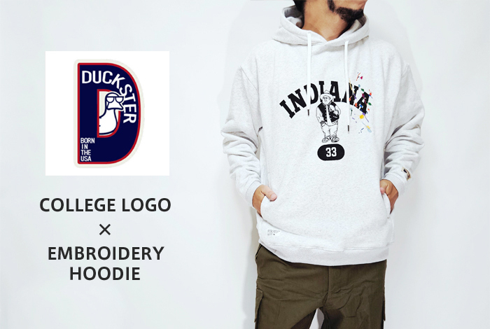 • DUCKSTER ダックスター パーカー メンズ カレッジロゴ ペンキ飛ばし 刺繍 裏起毛【送料無料】