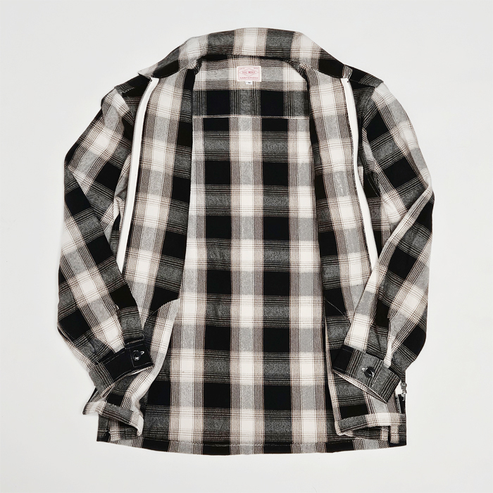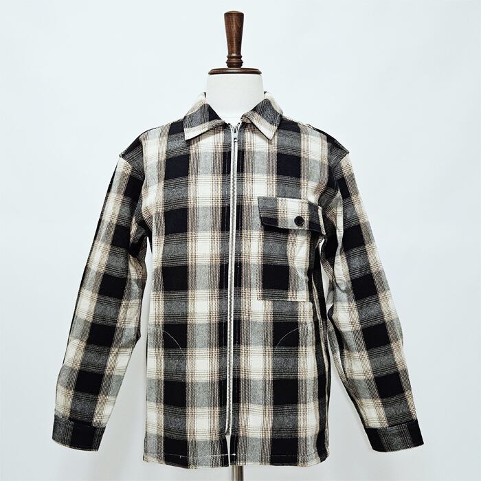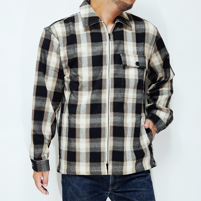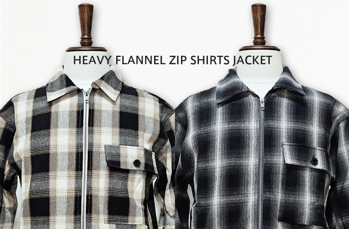 丈夫でしっかりとした厚手のコットンフランネル素材はそのままに、ボタンではなくジップアップ仕様で無骨さを残しつつスマートにデザインされたシャツジャケット。
