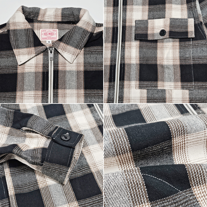 BIGMIKE ビッグマイク ネルシャツ メンズ ジップアップ シャツジャケット オンブレチェック アメカジ 大人 綿100%【送料無料】