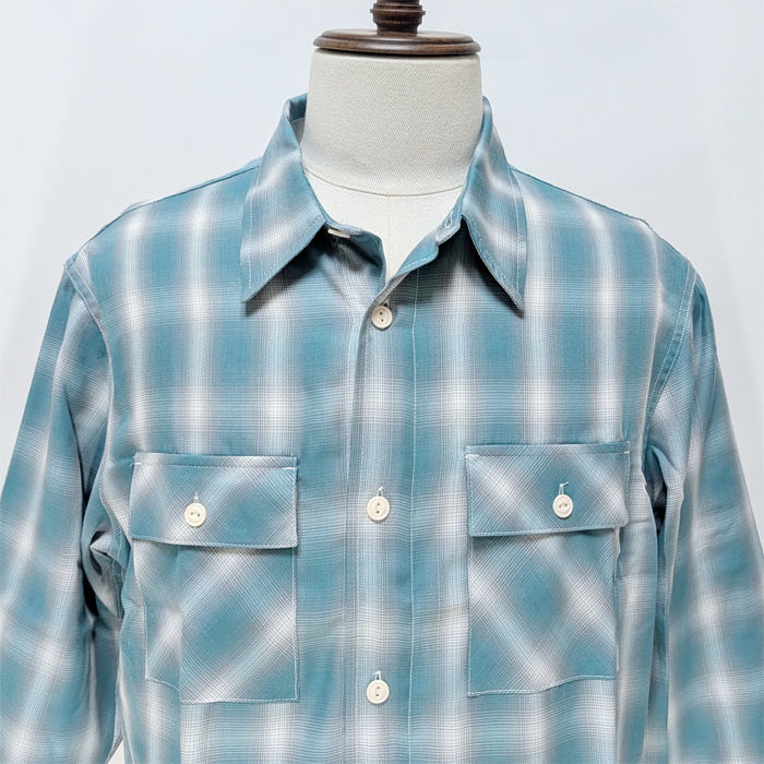 ヴィンテージワークシャツのディテールを残しながらも、レーヨン混の生地により、