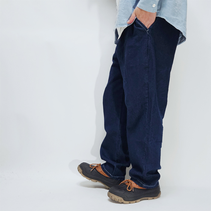 ラフさをベースにしながら、どこかクリーンな空気を纏ったデニムイージーパンツ。