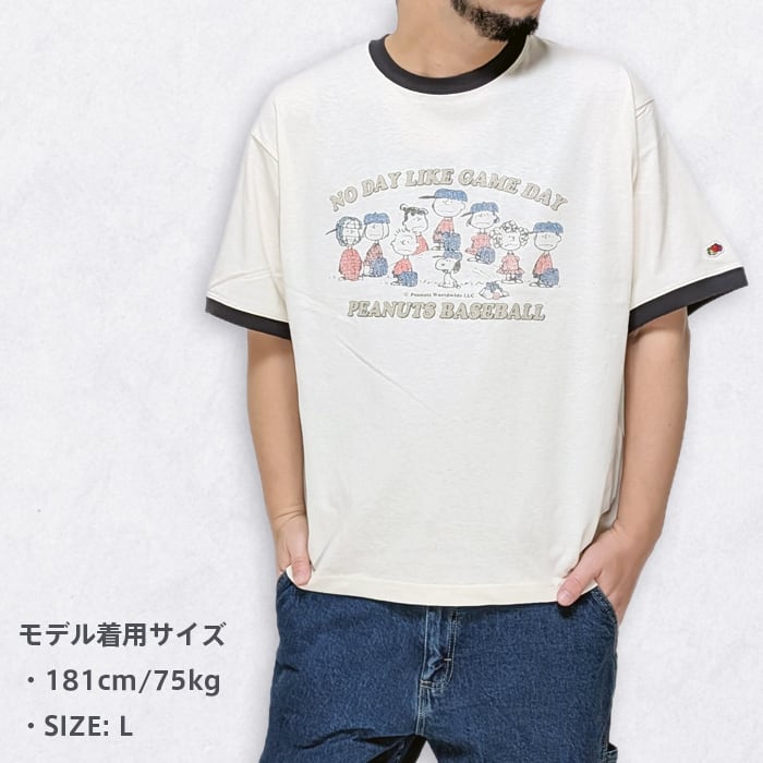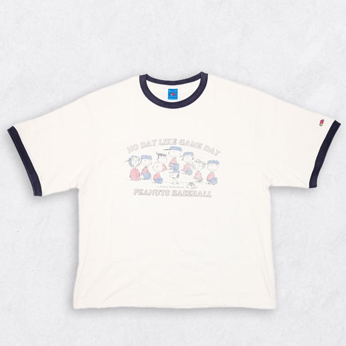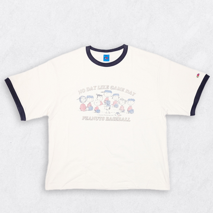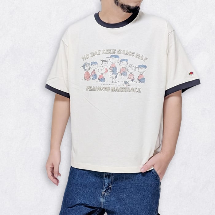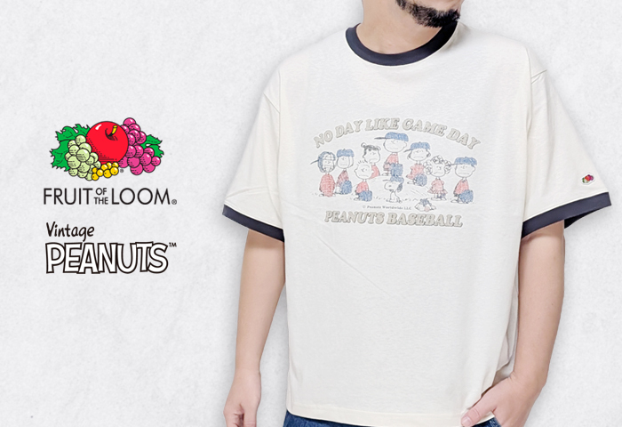 アメリカの老舗アンダーウェアブランドFruit of the Loomとスヌーピーで知られる人気キャラクターシリーズPeanutsとのコラボTシャツ。