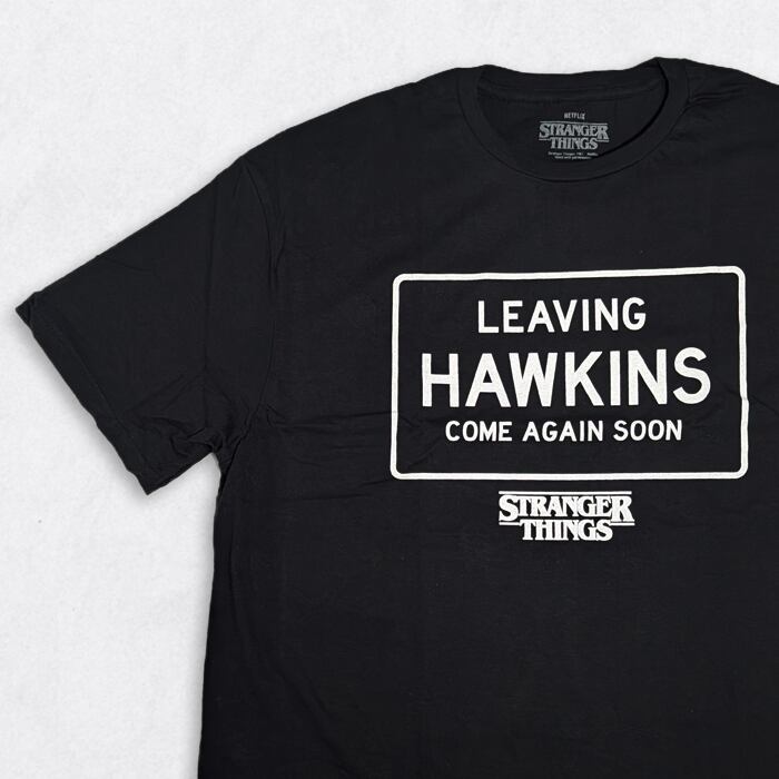 ストレンジャーシングス Tシャツ 公式ライセンス ROCKOFF STRANGER THINGS ボックスロゴ LEAVING HAWKINS【送料無料】