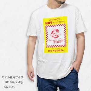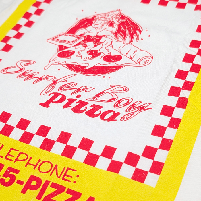それをあえてTシャツに落とし込むというセンス。まるで自分もサーファー・ボーイ・ピザの一員になったような、没入感が味わえます。