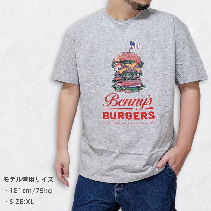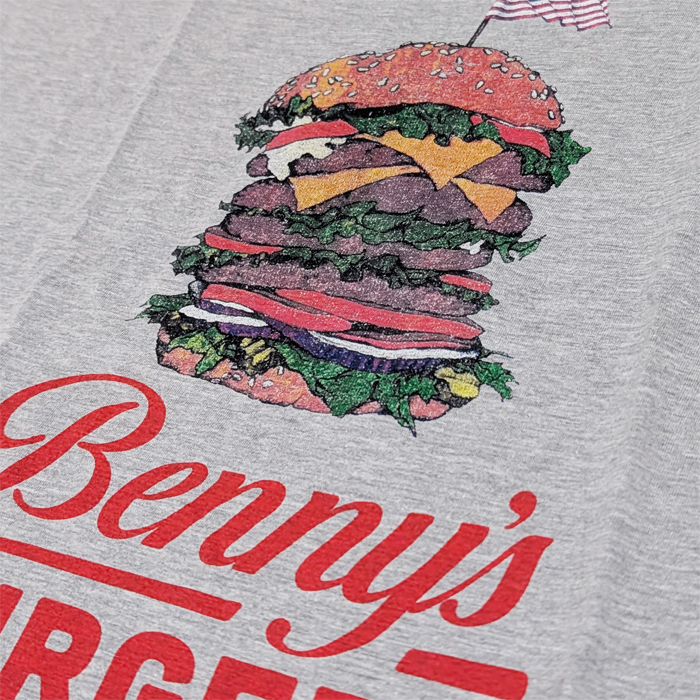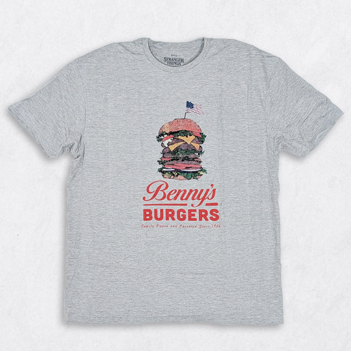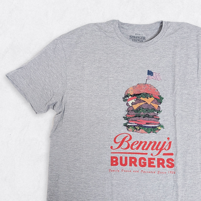 シーズン1の名シーンを象徴する『ベニーズ・バーガーズ』公式ライセンスTシャツ。