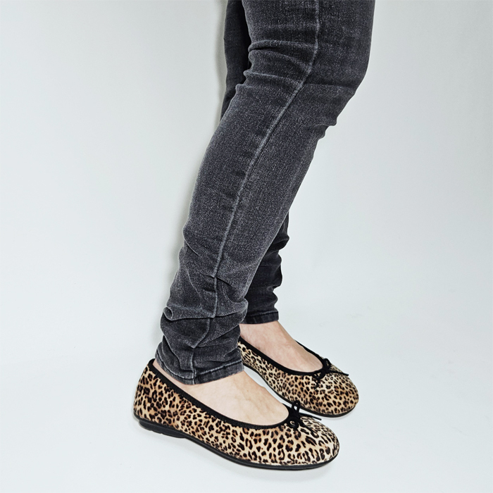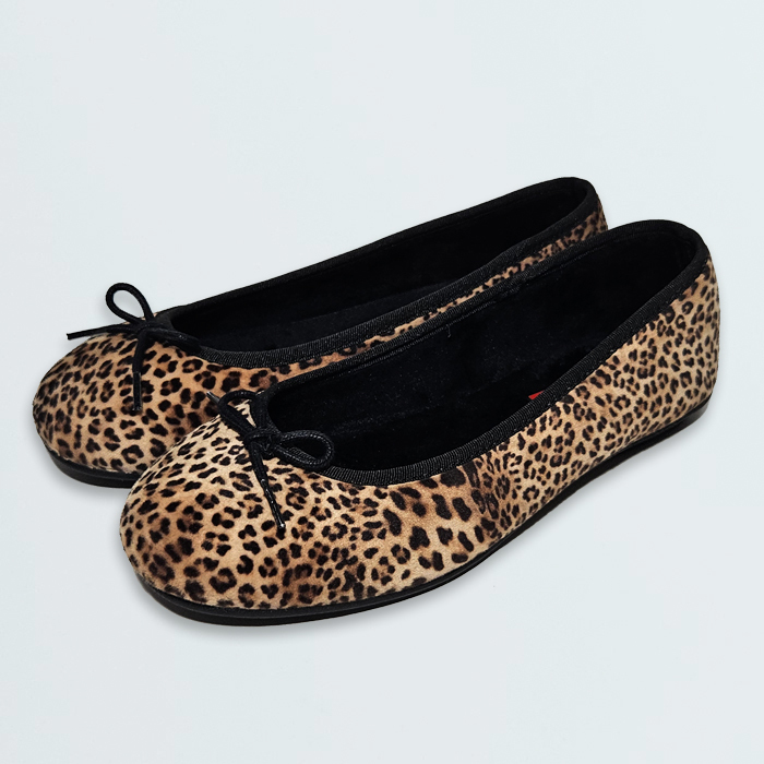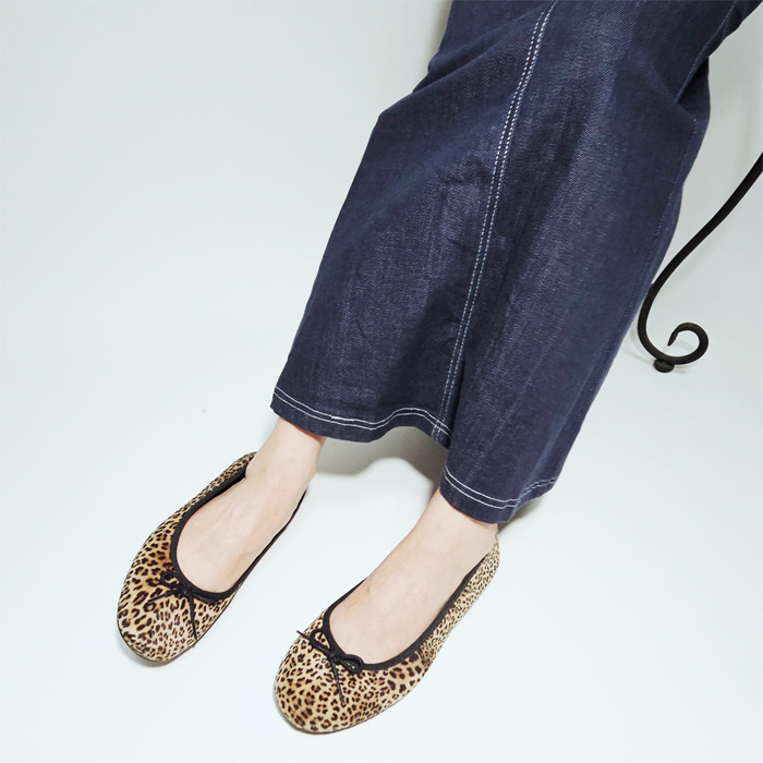 ベロア調の起毛した暖かみのあるアッパーに同系色のリボンを付属させたシンプルなデザインのバレエシューズ風のフラットなシューズです。